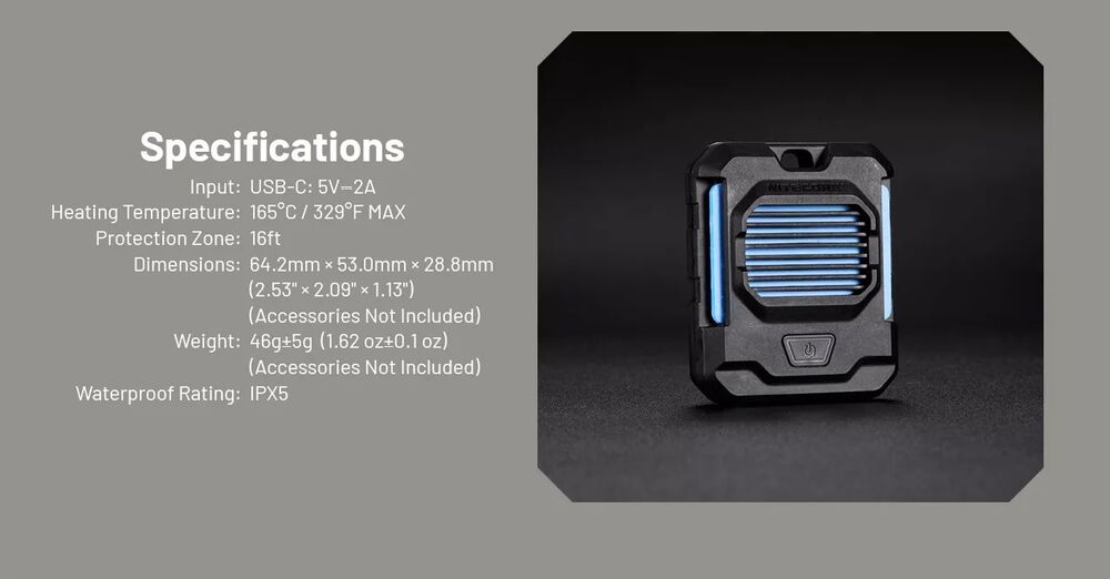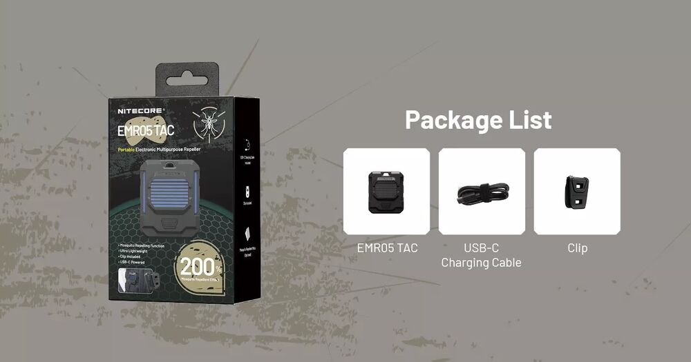 - Nitecore EMR05 TAC este un dispozitiv la îndemână împotriva țânțarilor și varianta tactică a lui EMR05.